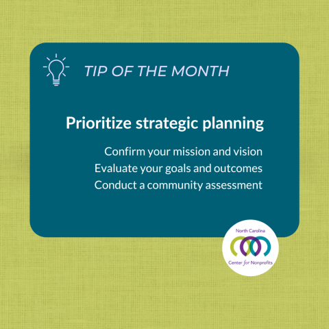 Our Tip of the Month series shares practical advice inspired by our Principles and Practices Guide: Best Practices for North Carolina Nonprofits designed to help nonprofits strengthen your organization, engage your community, and achieve your mission.